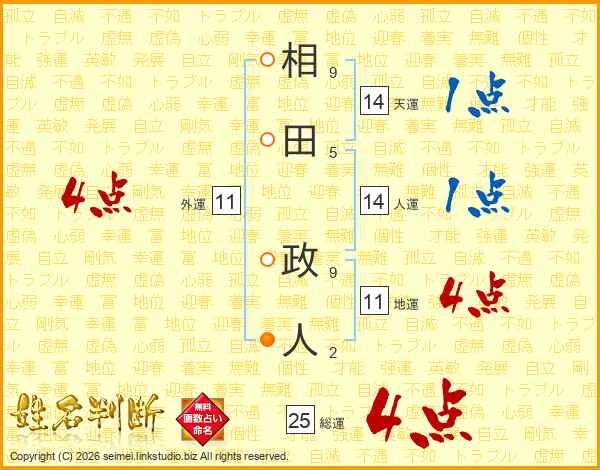 相田政人さんの総運は25画の4点!