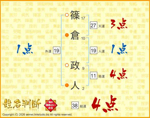 篠倉政人さんの総運は38画の4点!