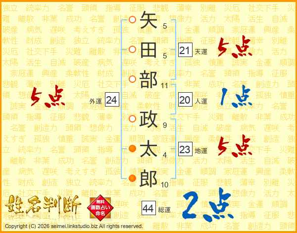 矢田部政太郎さんの総運は44画の2点!
