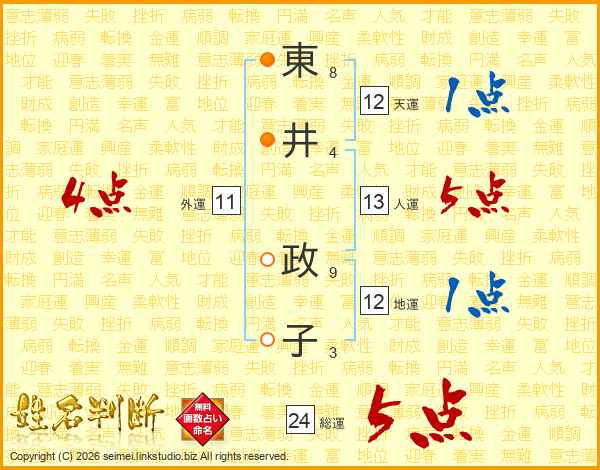 東井政子さんの総運は24画の5点!