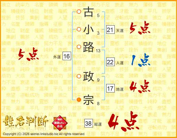 古小路政宗さんの総運は38画の4点!