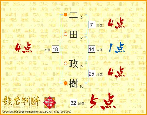 二田政樹さんの総運は32画の5点!