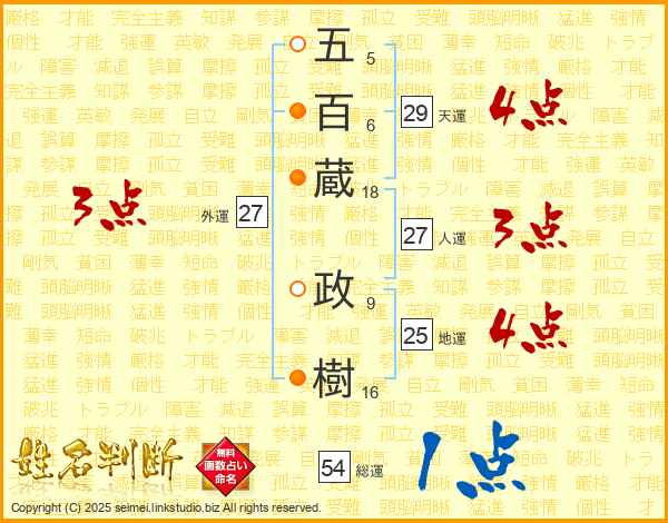 五(5画)百(6画)蔵(18画) 政(9画)樹(16画)