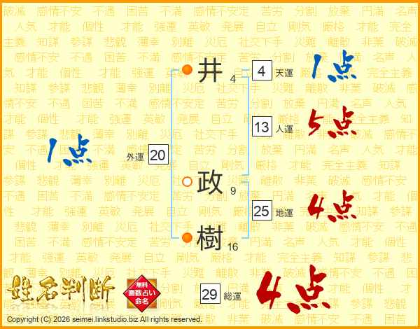 井政樹さんの総運は29画の4点!