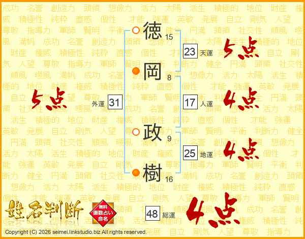 徳岡政樹さんの地運は25画の4点!