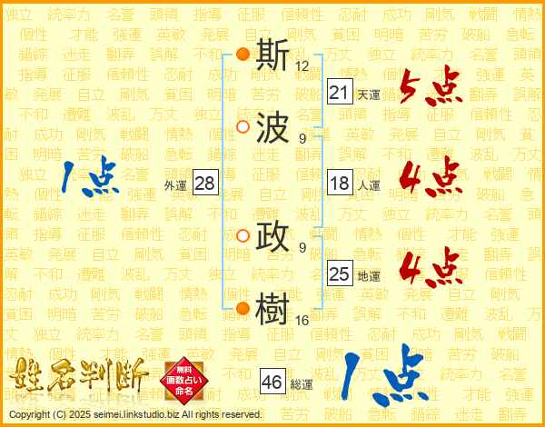 斯波政樹さんの天運は21画の5点!
