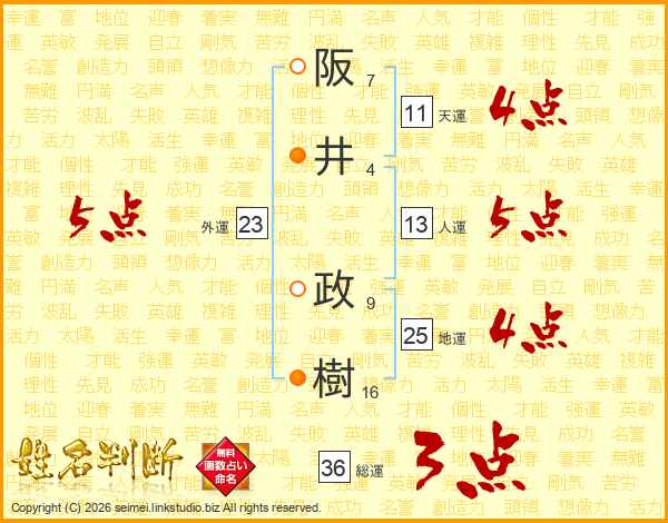 阪井政樹さんの総運は36画の3点!