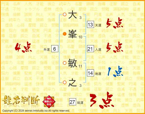 大峯敏之さんの天運は13画の5点!