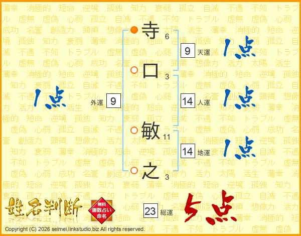 寺口敏之さんの総運は23画の5点!