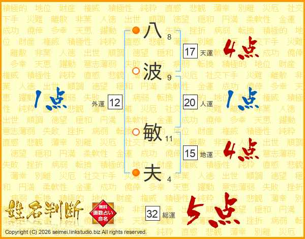 八波敏夫さんの総運は32画の5点!