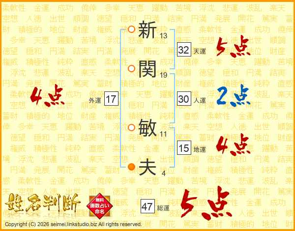新関敏夫さんの総運は47画の5点!