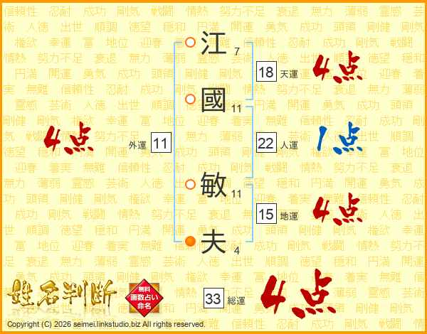 江國敏夫さんの総運は33画の4点!