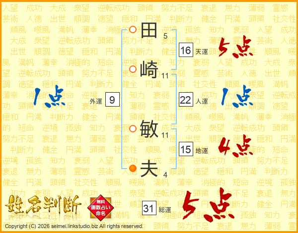 田崎敏夫さんの総運は31画の5点!