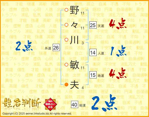 野々川敏夫さんの総運は40画の2点!