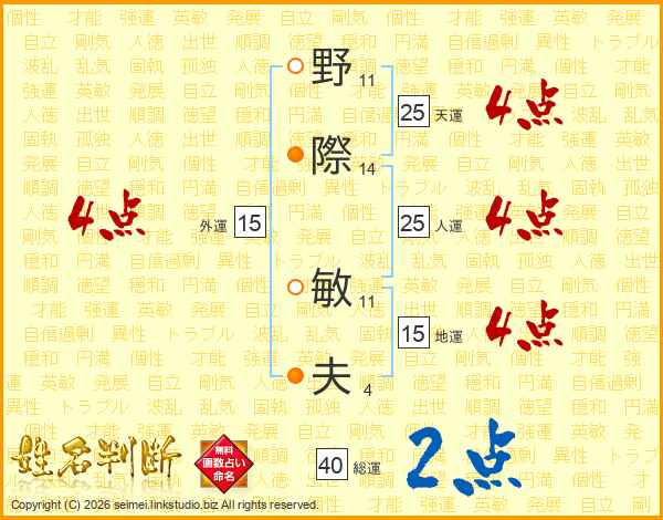 野際敏夫さんの総運は40画の2点!