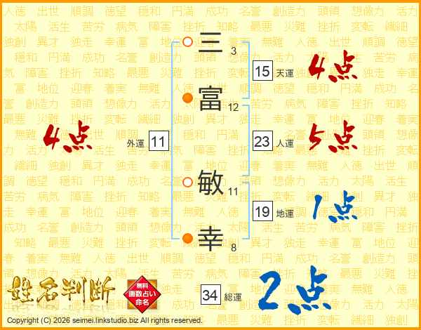 三富敏幸さんの人運は23画の5点!