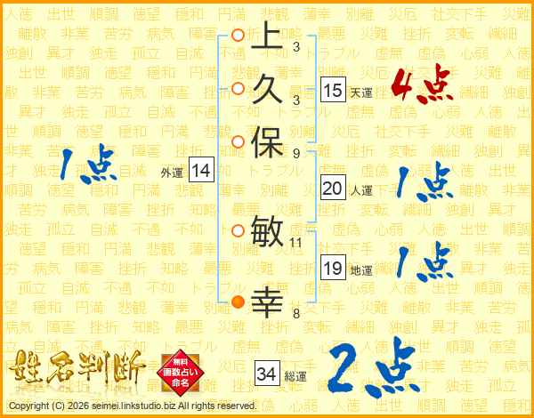 上久保敏幸さんの総運は34画の2点!