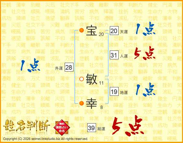 宝敏幸さんの総運は39画の5点!