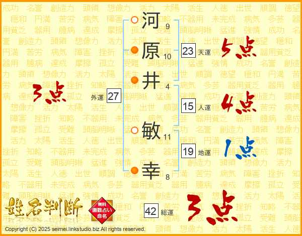 河原井敏幸さんの地運は19画の1点!