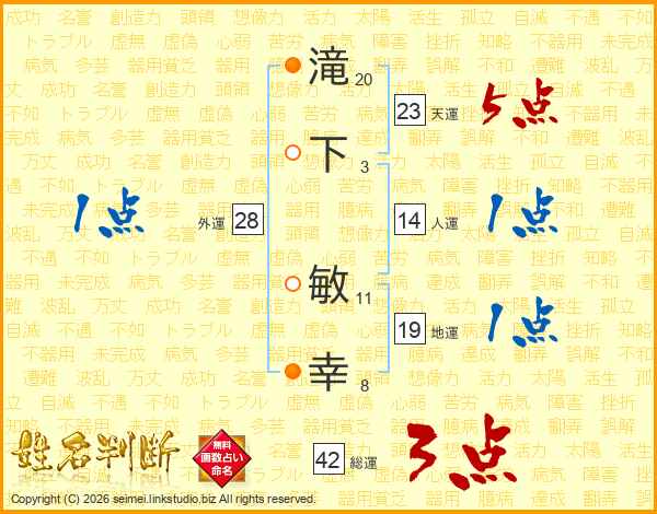 滝下敏幸さんの人運は14画の1点!