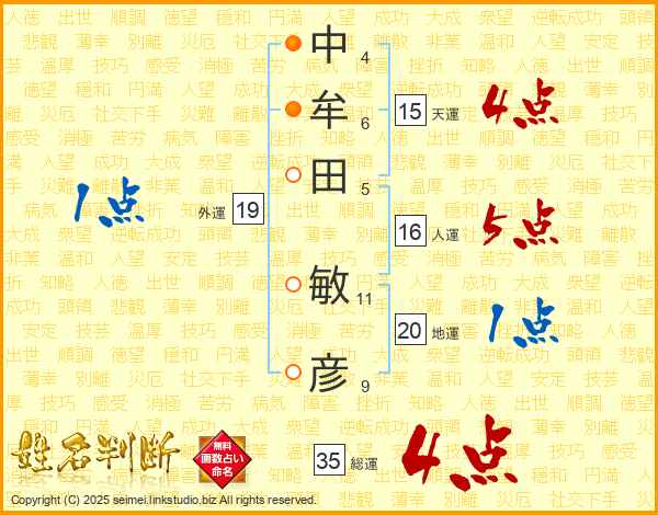 中牟田敏彦さんの総運は35画の4点!