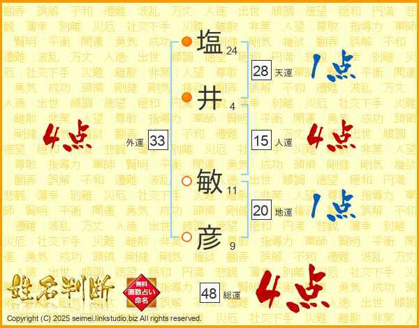 塩井敏彦さんの総運は48画の4点!
