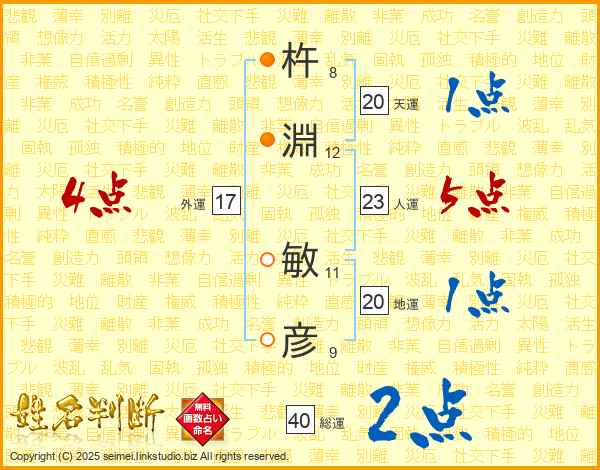 杵(8画)淵(12画) 敏(11画)彦(9画)