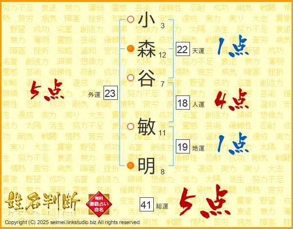 小森谷敏明さんの総運は41画の5点!