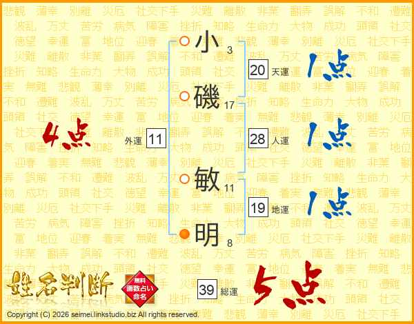 小磯敏明さんの総運は39画の5点!