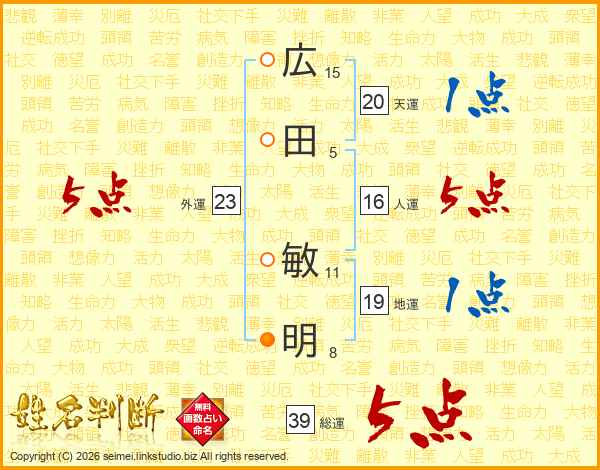 広田敏明さんの総運は39画の5点!