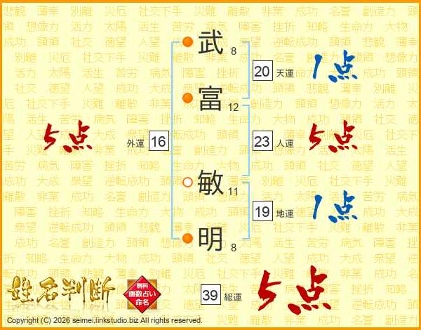 武富敏明さんの総運は39画の5点!