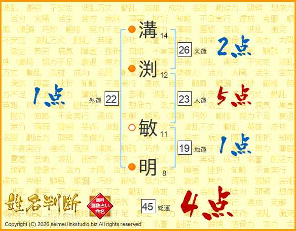 溝渕敏明さんの総運は45画の4点!