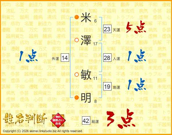 米澤敏明さんの天運は23画の5点!