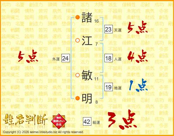 諸(16画)江(7画) 敏(11画)明(8画)