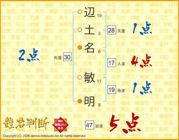 辺土名敏明さんの総運は47画の5点!
