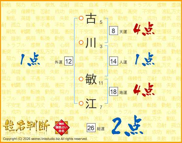 古川敏江さんの総運は26画の2点!