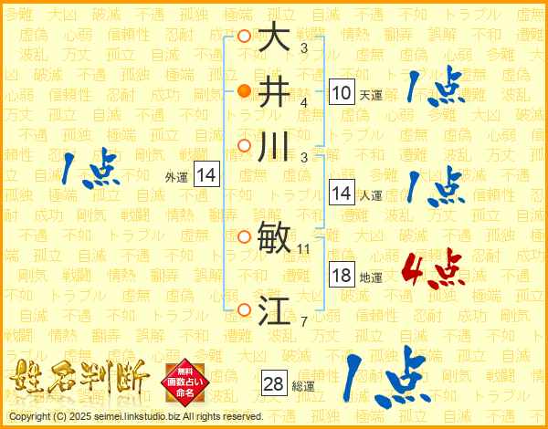 大(3画)井(4画)川(3画) 敏(11画)江(7画)