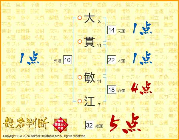 大貫敏江さんの総運は32画の5点!