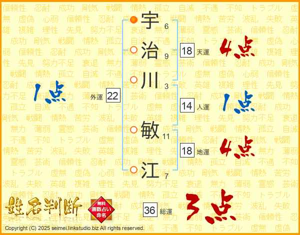 宇(6画)治(9画)川(3画) 敏(11画)江(7画)