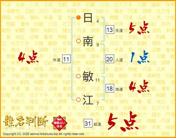 日南敏江さんの総運は31画の5点!