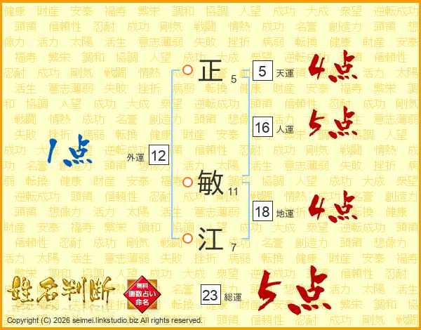 正敏江さんの総運は23画の5点!