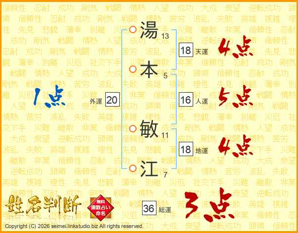 湯本敏江さんの天運は18画の4点!