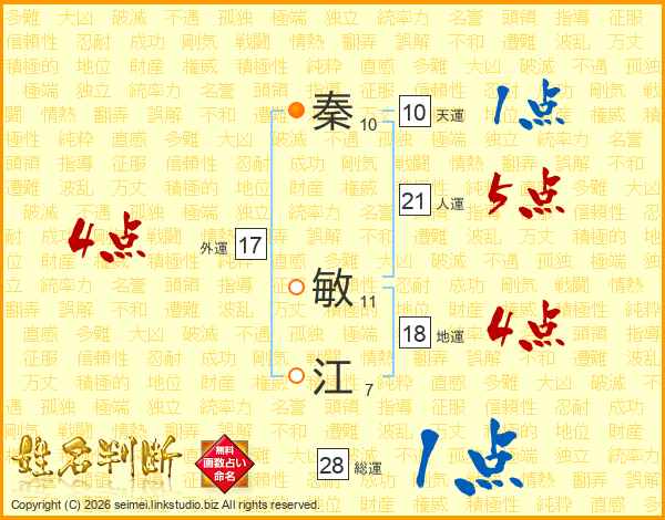 秦敏江さんの人運は21画の5点!