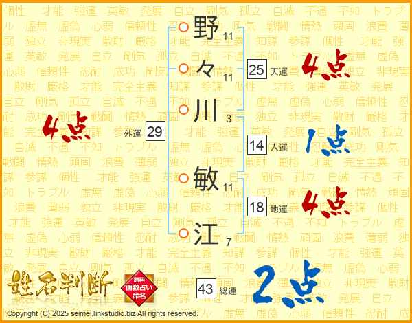 野々川敏江さんの総運は43画の2点!