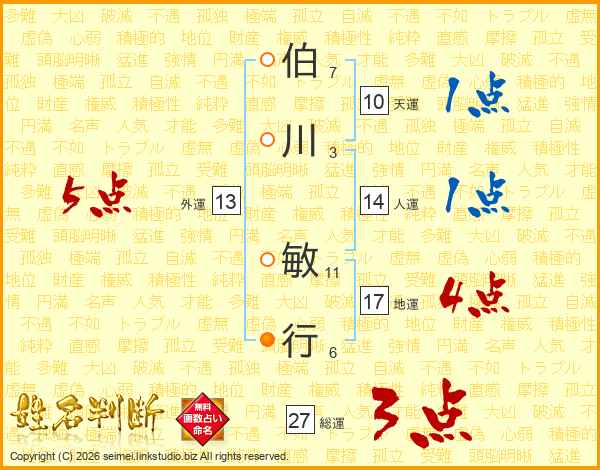 伯川敏行さんの総運は27画の3点!