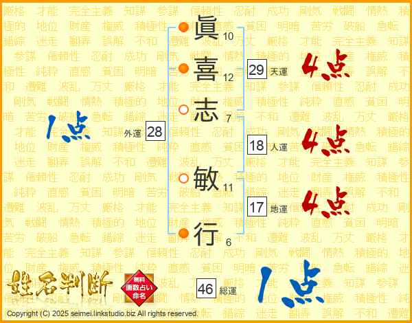 眞(10画)喜(12画)志(7画) 敏(11画)行(6画)