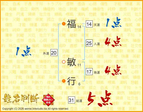 福敏行さんの人運は25画の4点!