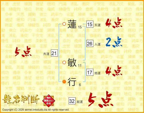 蓮敏行さんの総運は32画の5点!