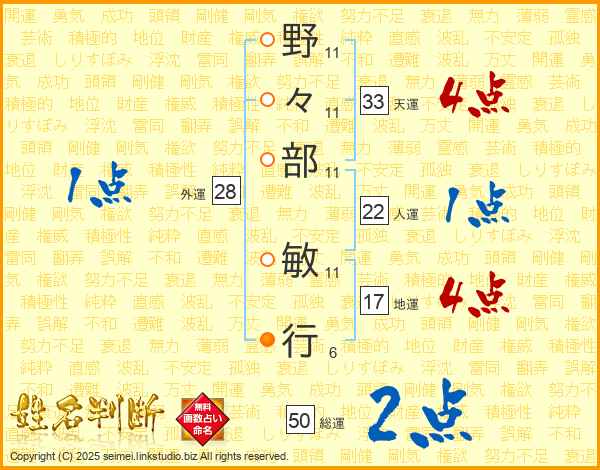野々部敏行さんの天運は33画の4点!