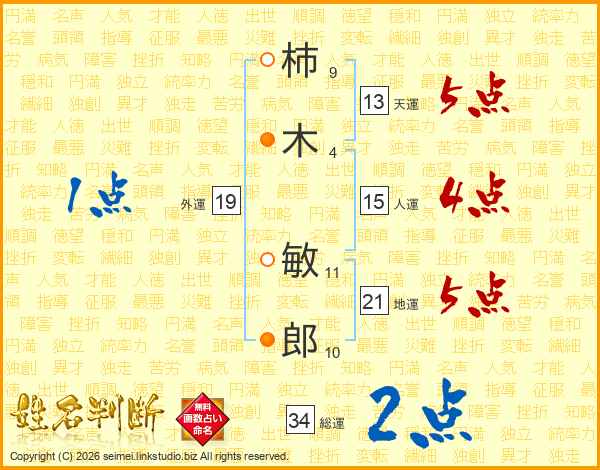 柿(9画)木(4画) 敏(11画)郎(10画)